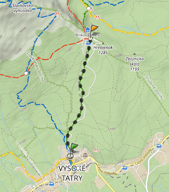 Słowacki Hrebienok, czyli po prostu Siodełko ma wysokość 1285m n.p.m. i oferuje widok nie tylko na najbliższe tatrzańskie kolosy, ale i Kotlinę Podtatrzańską, Słowacki Raj oraz Niżne Tatry. Na miejsce możemy dostać się na kilka sposobów. Najbardziej kusząca jest oczywiście kolejka terenowa, która w 7 minut wywiezie nas na Hrebienok, a przejażdżka górskim pociągiem, to nie lada atrakcja. Wariant ten jest jednak kosztowny – za przejazd góra-dół trzeba zapłacić 13€ od osoby dorosłej. Alternatywnie można wyjechać na Siodełko rowerem, bo na samą górę prowadzi asfaltowa cyklostrada. Gdybyście jednak nie mieli pod ręką dwóch kółek, to zawsze pozostają nam własne mięśnie i pokonanie tego odcinka pieszo. Spacer nie zajmie więcej niż godzinę, a trasa w obie strony wyniesie 5 kilometrów. Do wyboru jest szlak zielony lub marsz asfaltówką.