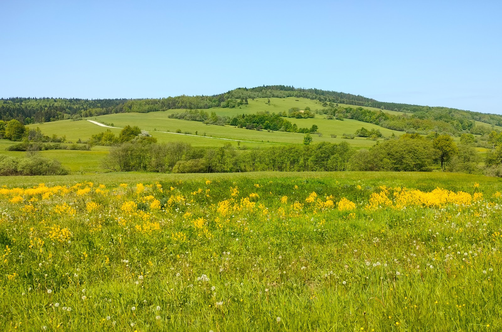 Beskid Niski to najdziksze, a zarazem najbardziej rozległe pasmo górskie w Karpatach i choć kilkakrotnie przymierzałam się do odwiedzin, to jest wciąż nieodkrytą przeze mnie kartą. Upalny majowy weekend wydaje się być idealny na pierwszy wypad, więc udaję się do wsi Izby, by uskutecznić dziewiczą wędrówkę w tym paśmie. Już sam dojazd na miejsce jest niezwykle malowniczy, a kres trasy następuje wraz z końcem drogi, gdzie zostawiamy samochód. Nie ma tu znakowanego szlaku turystycznego, jednak szeroka szutrowa droga i sielankowy teren zachęcają do wycieczki. O 10:00 rozpoczynamy marsz wśród zielonych wzgórz, błękitu nieba i niekończącej się przestrzeni. Od razu dostrzegam także nasz cel – najwyższy szczyt Beskidu Niskiego, Lackową.